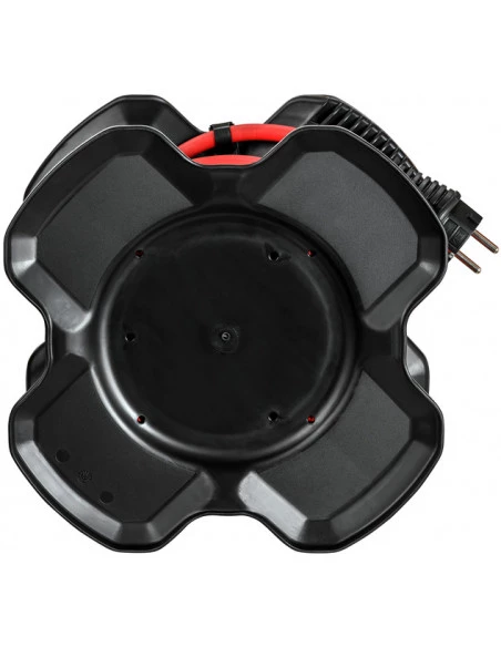 • Enrouleur avec support en plastique/caoutchouc avec 4 prises avec clapets à fermeture automatique, voyant de présence de tension LED et disjoncteur thermique