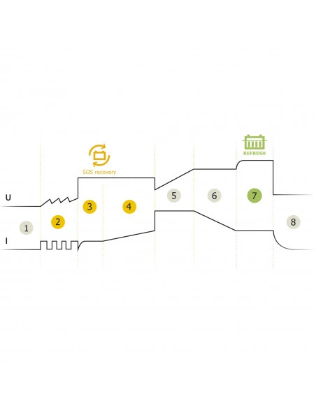 • Courbe de charge entièrement automatique et intelligente en 8 étapes (50% plus rapide qu’un chargeur traditionnel).
