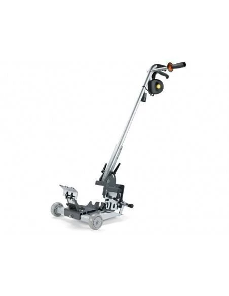 Guidage par roulettes limitant les efforts déployés lors du ponçage de longs cordons de soudure.
